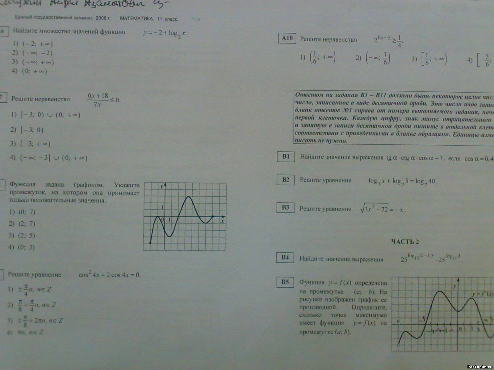 | А про С3 я думаю, нужно было решить сначала при каких А неравенство имеет смысл, ну т.е. решить это неравенство, а потом в ответе записать обратные промежутки. А неравенство я пробовола решать методом интервалов...при каких значениях знаменатель не равен нулю я нашла, а вот числитель решить не смогла:(((