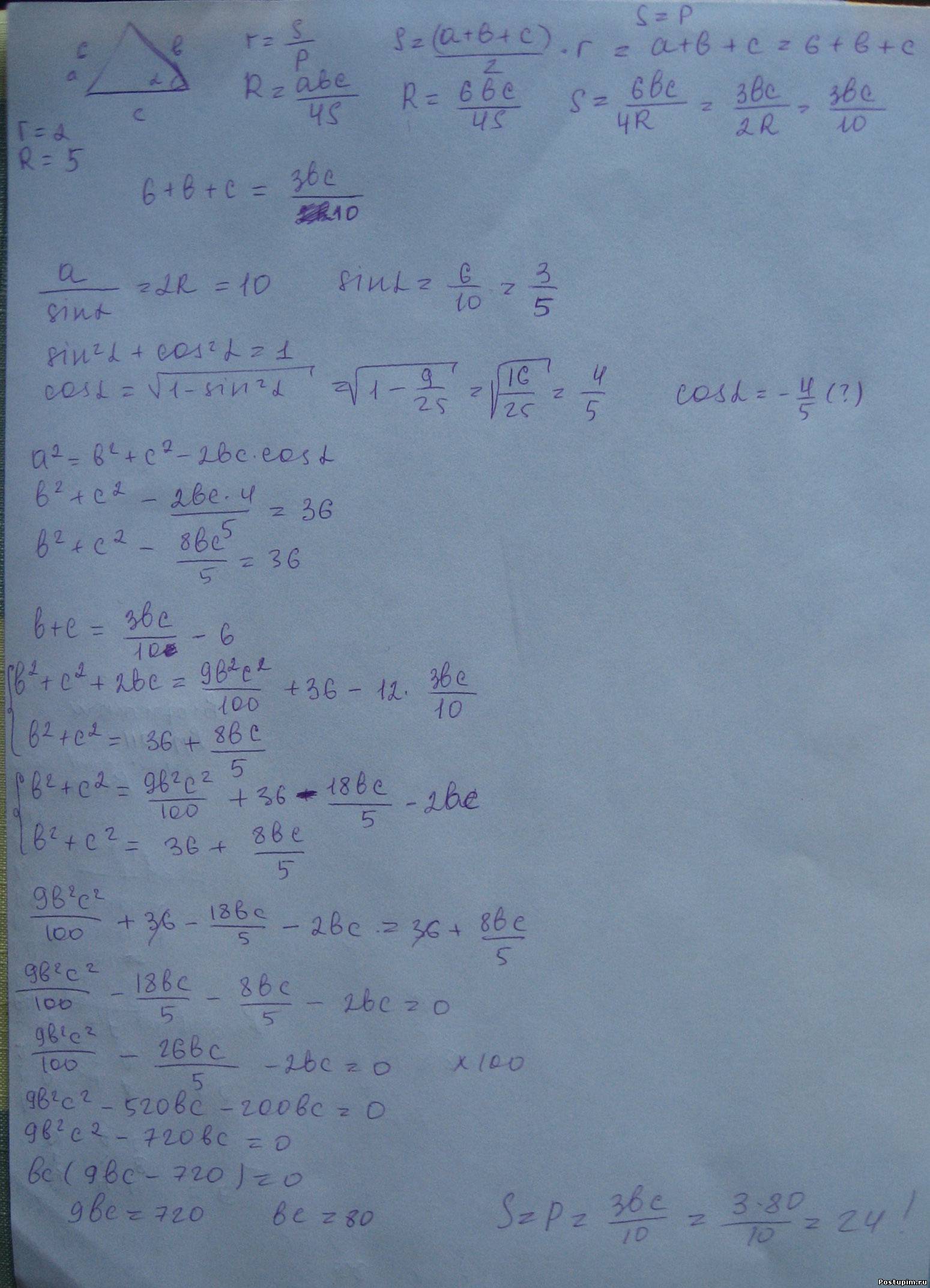 | Quote (simplyclever) + рассмотреть второй случай cosa = -4/5. Ну я в принципе догадалась, что если рассматривать этот случай, получится ответ после "или" )) simplyclever,первое-то я и решала традиционном способом...Но после возведения в квадрат у меня такое получилось мама не горюй))) Спасибо всем)