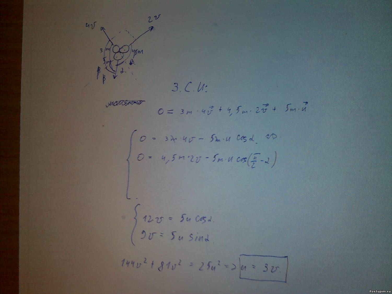 | prm2008, спасибо)) Добавлено (2010-06-28, 8:03 PM) --------------------------------------------- при произвольном делении покоившегося ядра химического элемента образовалась три осколка массами:3m;4.5m;5m.Скорости первых двух взаимно перпендикулярны,а их модули равны соответственно 4v и 2v.Определите модуль скорости третьего осколка. как решать?! Добавлено (2010-06-28, 8:15 PM) --------------------------------------------- еще плз) К подвижной вертикальной стенке приложили груз массой 10 кг.Коэффициент трения между грузом и стенкой равен 0.4.С каким минимальным ускорением надо передвигать стенку влево,чтобы груз не соскользнул вниз?
