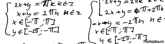 | в услоыии написанно что корни с промежутка икс от минус пи до пи у - от минус 2пи до минус пи Добавлено (2010-03-01, 8:41 PM) --------------------------------------------- вот ц 3 но в нем совсем не уверен