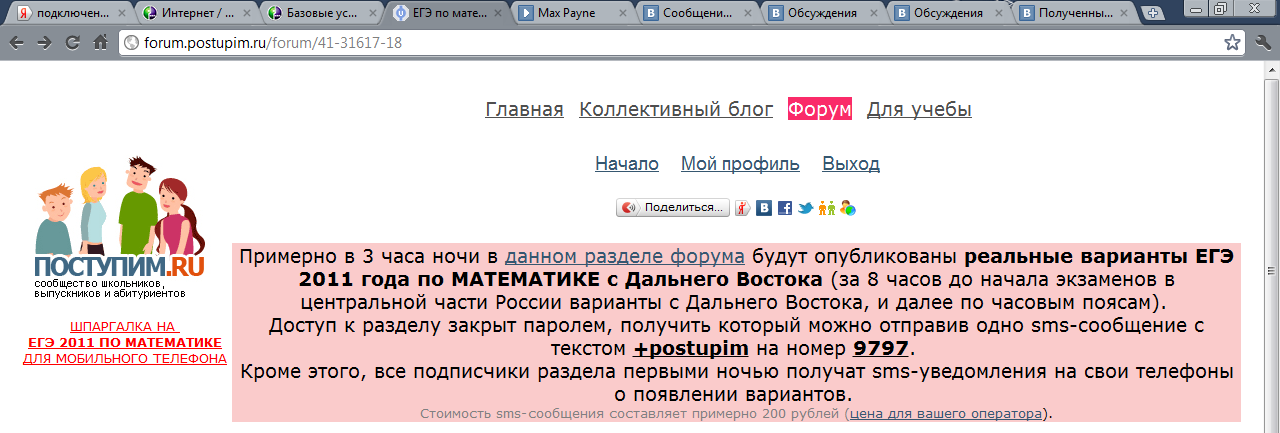 ЕГЭ по математике 2011 КИМЫ из Владивостока
