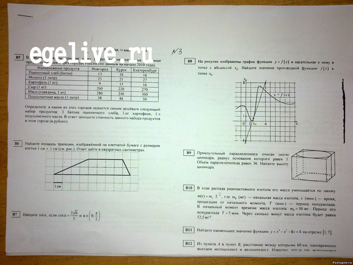 Реальный КИМ по математике 2011