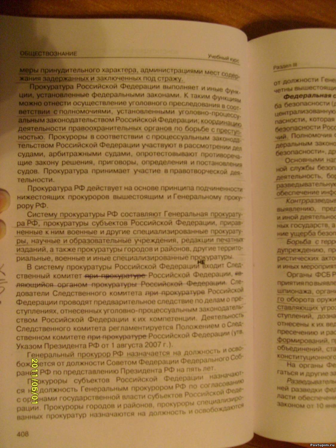 | Quote (Krolick) а вообще вот из учебника параграф про прокуратуру из какого это учебника? В оранжевом Боголюбове (который официальный для общеобразователных школ) такого нет. В зеленом тоже - в предисловии написано, что право должно изучаться отдельным курсом.Добавлено (2011-05-21, 5:07 PM) --------------------------------------------- Впрочем про прокуратуру легко догадаться. Я вот как раз постоянно забываю то, что есть в учебниках - полномочия Федерального Собрания, Президента и.т.д.