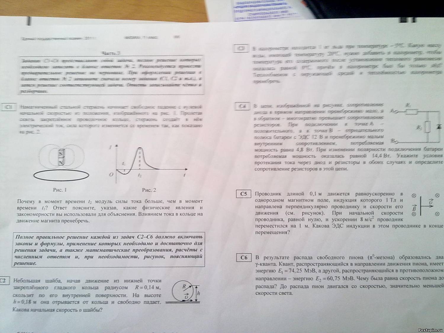 | Astemir у меня такой же вариан как у тебя , я только С5 решил , могу кинуть фото. точно правильно решил. С6 пробую про распад на кванты пиона , не фига ниче не нахожу , дайте формул плиз(( С3 про калориметр не могу вспомнить , задача простая , но забыл, Q=cm(t2-21) на основе этой формулы решается. C2 тоже пока не выходит