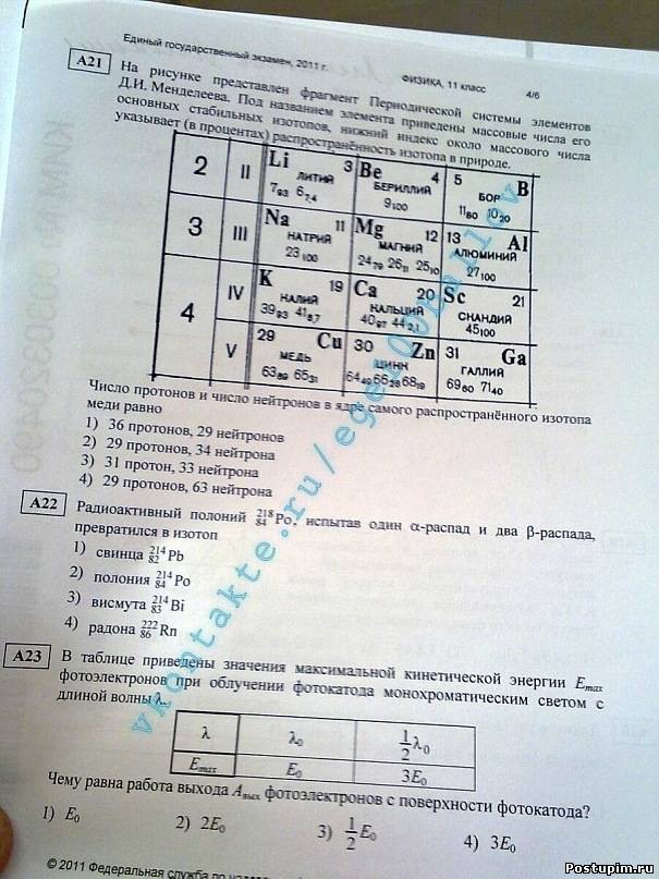 Реальный вариант №1 (04-10) ЕГЭ по Физике 2011
