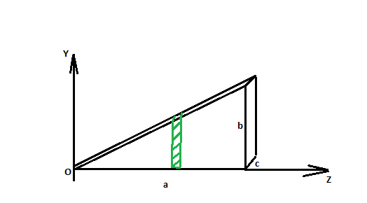 | Найти момент инерции треугольника ,сделанного из жести,относительно оси z, со сторонами a=10 см ,b=5 ,c=0,1. Если разбить его на стержни,момент инерции треугольника как сумму моментов инерции этих стержней