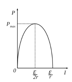 | takeshymsi, мощность, выделяющаяся на резисторе, максимальна при условии R=r. Это легко доказать: Р=IU. Но по закону Ома I=ε/(R+r); тогда ε=I(R+r)=U+Ir. Следовательно, U=ε-Ir. Тогда Р=I(ε-Ir), посмотрите график. Если мощность максимальна при I=ε/2r, то R=r