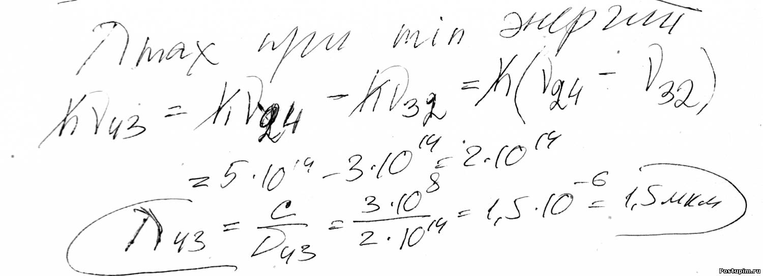 | arena55, я ищу максимальную энергию - и впрямь не то, что требуется. Если надо найти максимальную длину волны - т.е. длину волны перехода с 4 на 3 уровень, делаем то же самое, получим 1,5мкм.