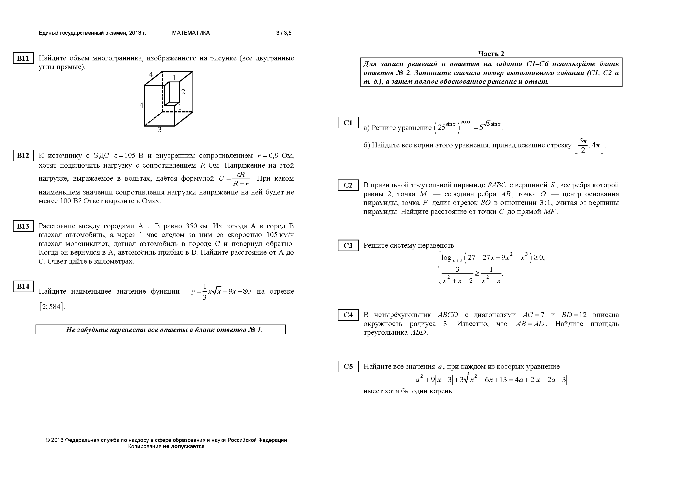 Решаем 1 вариант, который должен БЫЛ быть на ЕГЭ2013