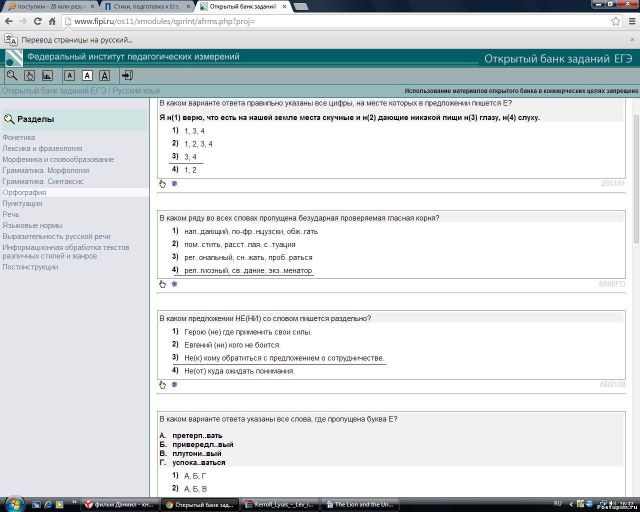 | Maria_Tods, ну алфавит выучила и базовый набор фраз знаю. читаю довольно нормально Добавлено (2014-03-09, 4:27 PM) --------------------------------------------- Итак, я вернулась) Ну как вернулась, на дворе март, пора взяться за активную подготовку. а значит берем неделю русского, неделю общества ну и и тд...До 30 марта надо решить куда ж я точно поступаю и что сдаю... Яндекс.егэ мне в помощь в качестве лакмусовой палочки) Итак, русский язык, 3 вариант, где я ошибалась: А1 А8 А14 А22 А24 А26 А28 В1-В8 Доктор, это лечится???